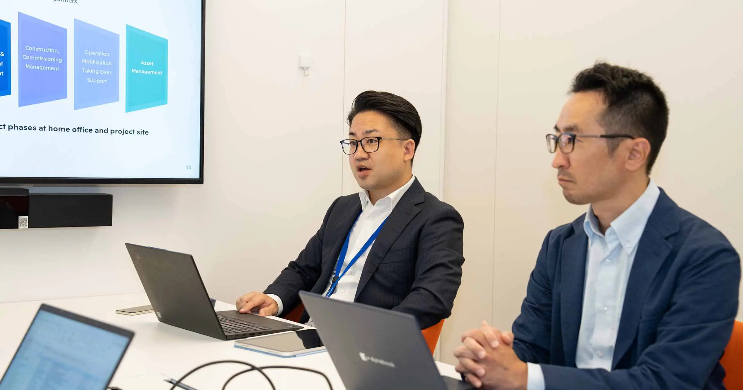 基本的に三井物産本店と二人三脚で業務に携わるため、私たちのオフィスは本店の中にあります。我々は主に技術・プロジェクトマネジメント周りを担当し、状況を見ながら緊密に連携することで、最大の成果が出るように臨機応変に対応します。